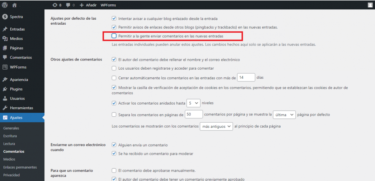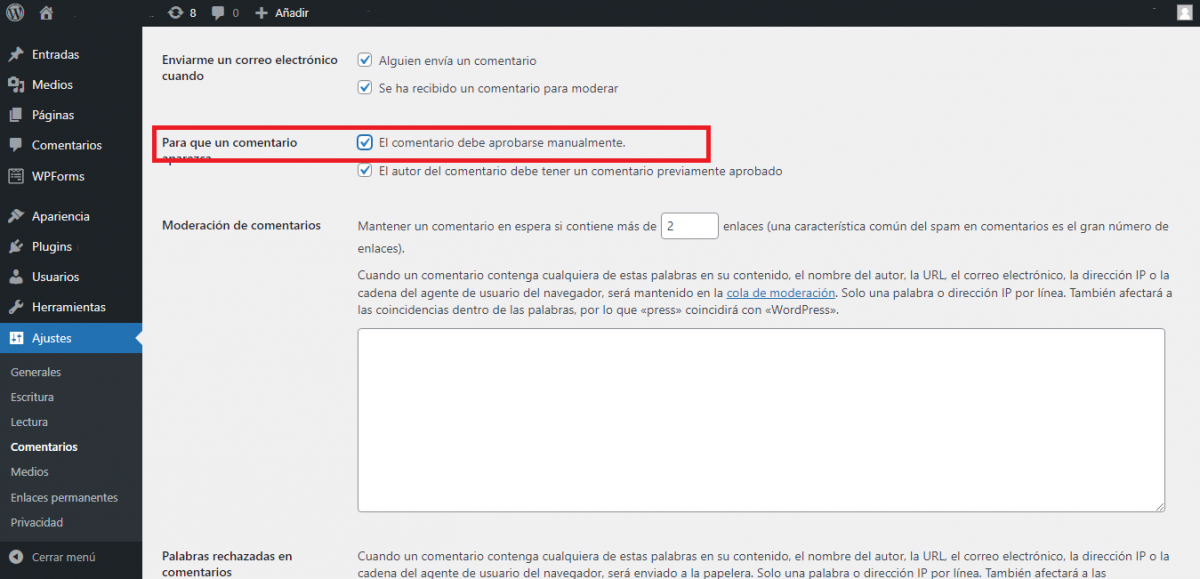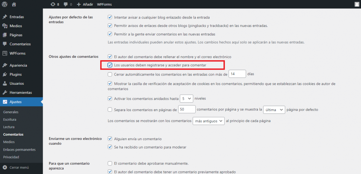 For this, it is only necessary to go to the "Settings" option of the Wordpress administration panel and then select "Comments". From this section you can define the actions that users can carry out on your website.