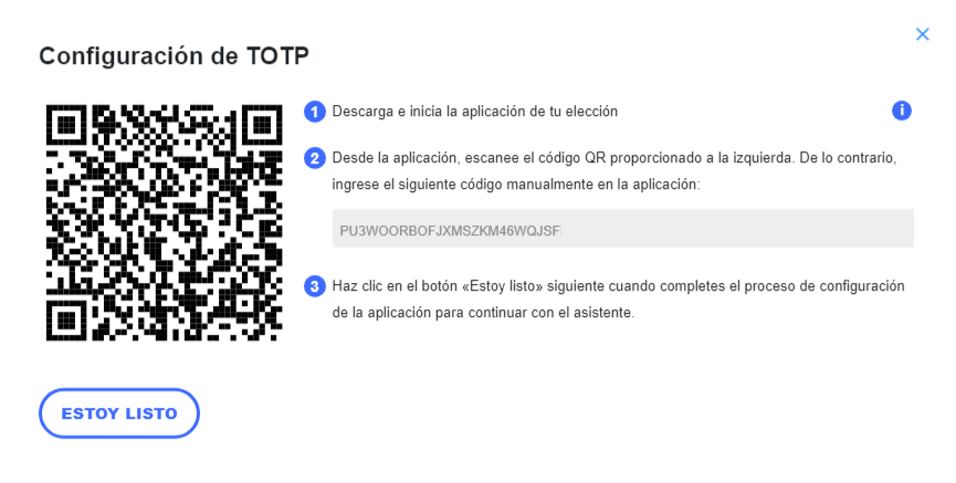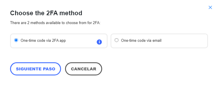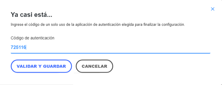 Once you enter this data, the platform will request that you enter a code provided by the application or the method you have configured to obtain this security data.