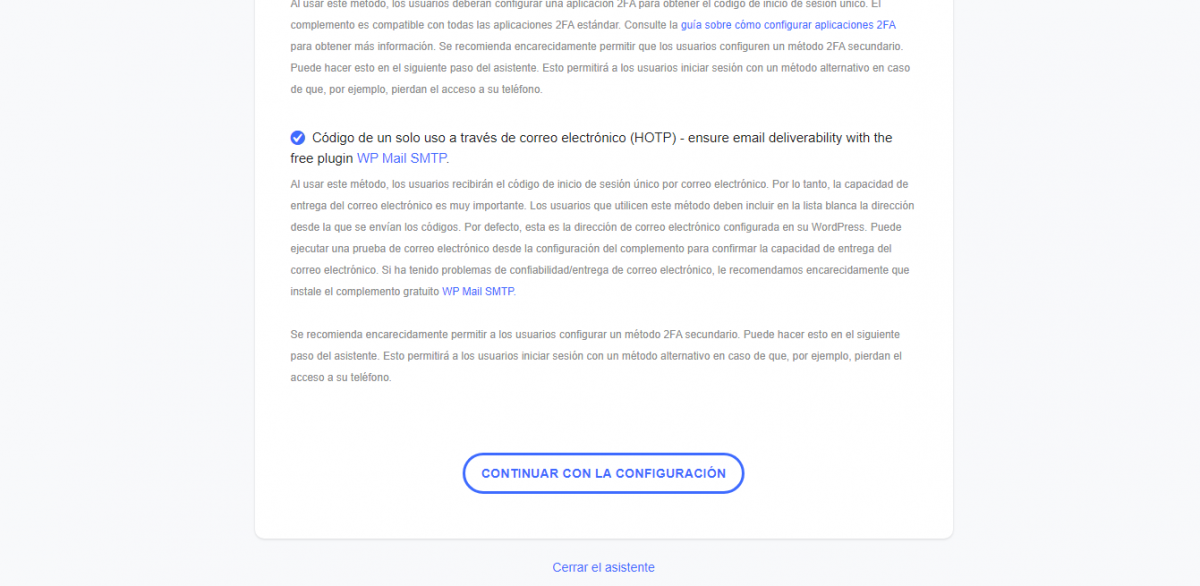 Now we will show you how to configure the particular Wordpress account. Click on SET UP NOW 2FA and choose the method you want to set up for yourself.