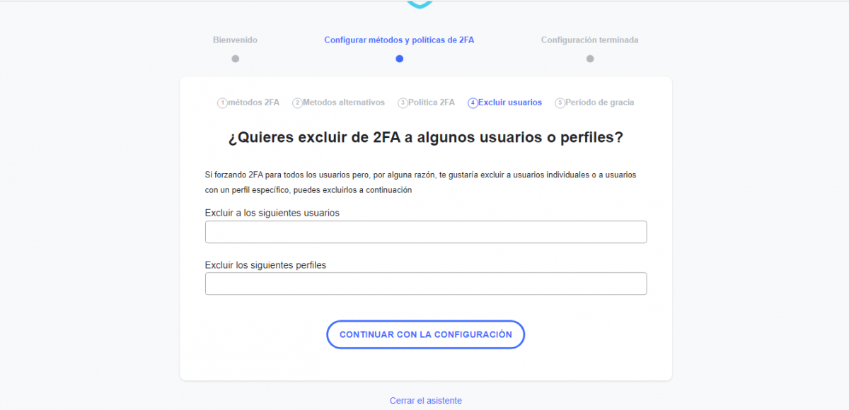Next, you will be able to specify if there are any user profiles that you want to exclude from the use of this method.