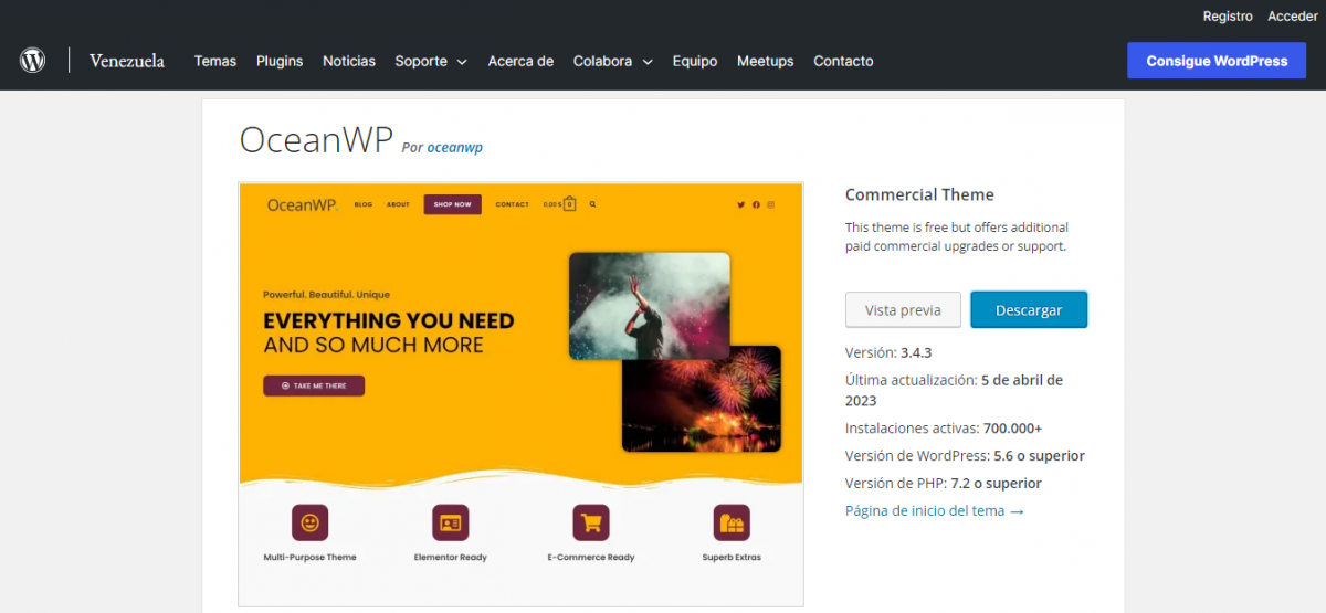 OceanWP it's a versatile theme and it's popular, especially among online store owners and for good reason. One of its main advantages is its lightweight structure, which ensures that your website loads quickly and efficiently.