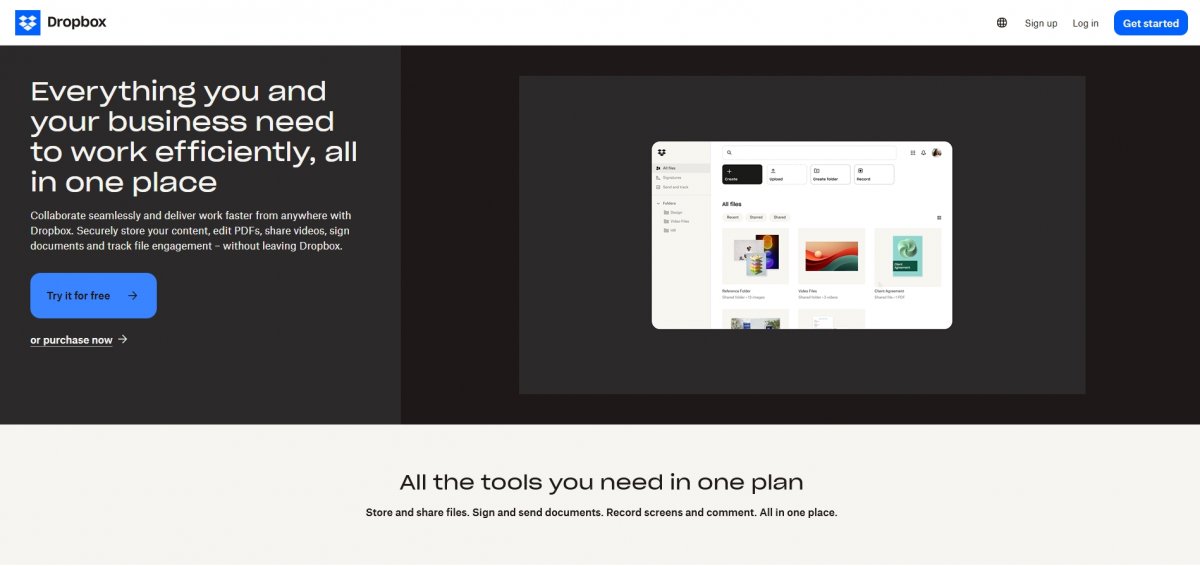 The Dropbox landing page is a classic example of minimalist design and clear messaging. It highlights the free storage space they offer and allows you to sign up with just one click.
