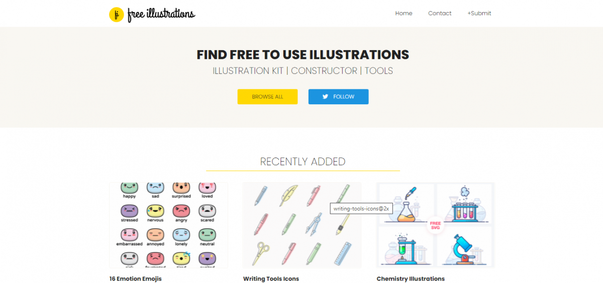 - freeillustrations.xyz It works like a large catalog of third-party illustrations.