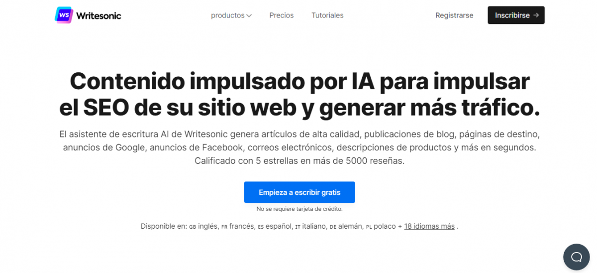 Generates short and long texts free of plagiarism, also provides content ideas. It has a free account forever with which you will get 20 credits with 20 icebreakers, two articles of up to 5000 words, 4 of 1000, as well as 4 podcasts and voiceovers.