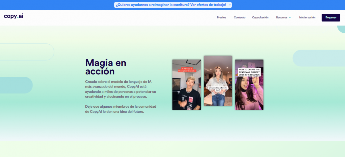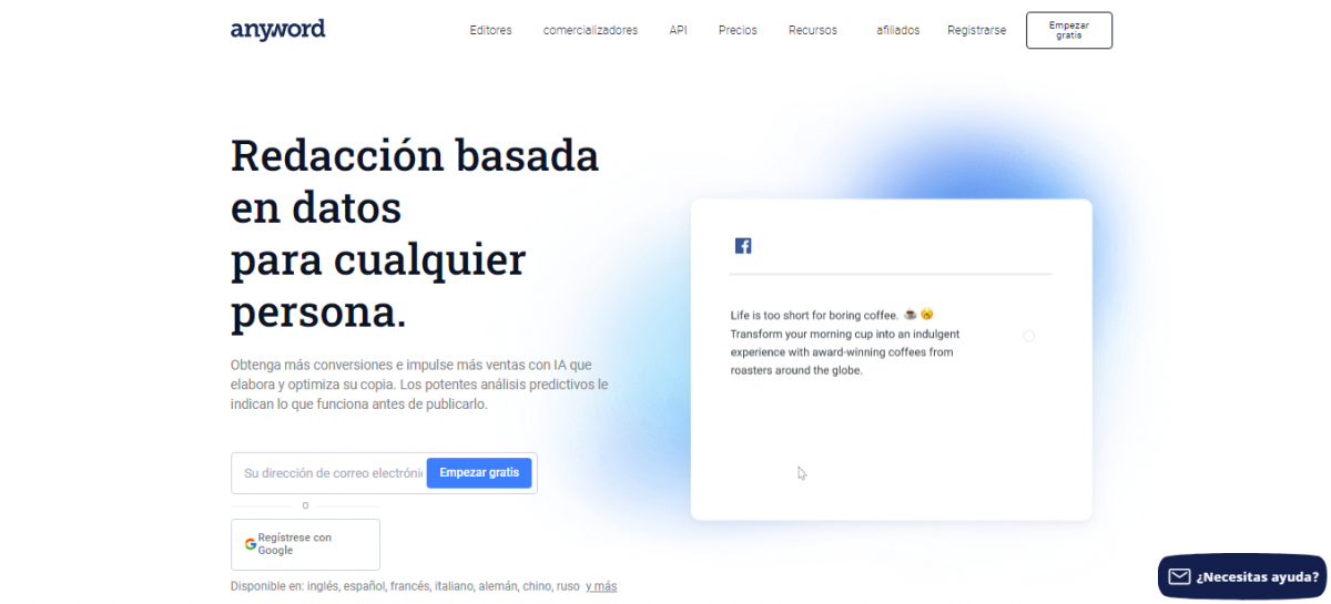 Any word It is an ideal option whether you need to write short, medium or long texts. This tool is capable of learning to create content with your brand voice and has a very good approval from users in general.