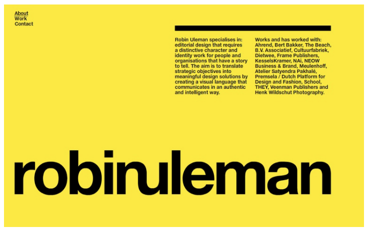 Something more minimalist is this site of editorial designers who use colors and typography to describe what they do. It is a very clean and minimalist proposal that produces curiosity because it is completely out of the ordinary.