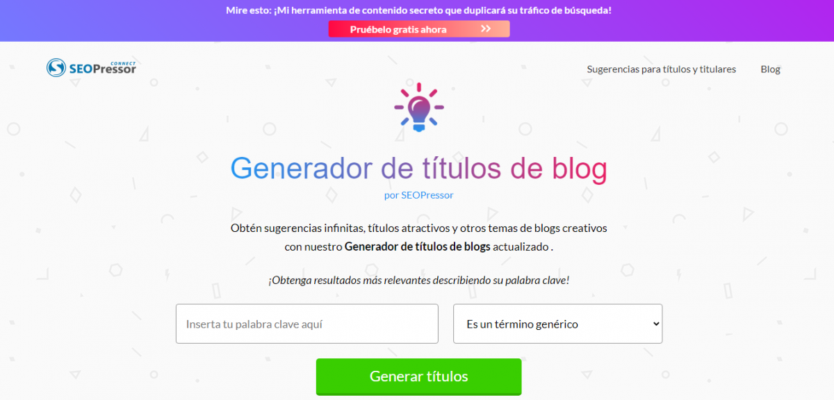 This is another interesting free option that provides attractive titles for your content. You just have to include the keyword in the text box and press the button that follows it, so that it will show you a significant number of alternatives that you can use.