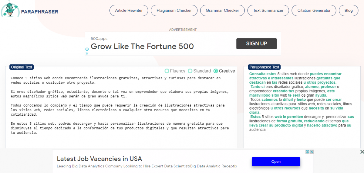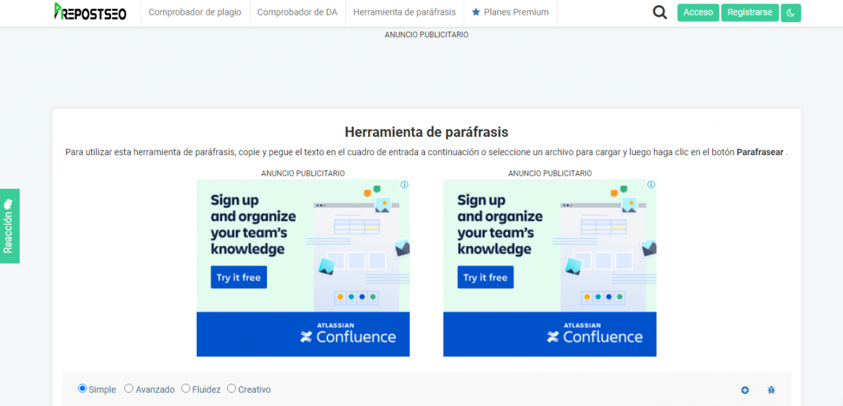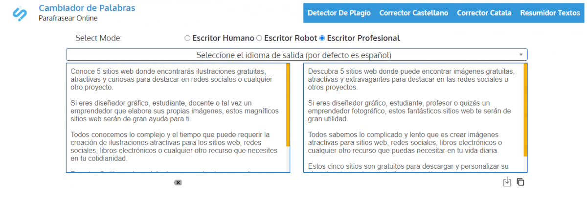 This is a free tool with which you can paraphrase existing texts, in multiple languages. To use it, like the other platforms, it is only necessary to paste the original content in the text box located on the left, then choose between the 4 levels of reformulation.