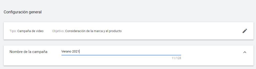 The first element to be incorporated is the "Name of the campaign", so try to make it a clear and precise identifier with which you can recognize the orientation of the campaign quickly and easily.