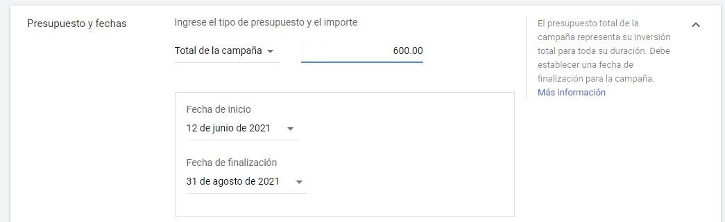 Then, set the budget and date for the campaign. The normal thing is to assign at least $ 10 per day, but you can assign the amount you want according to your availability.