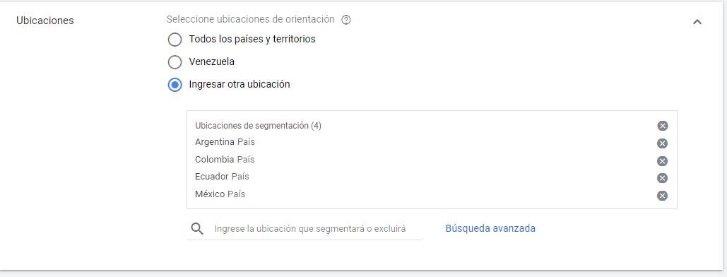 In "Location", select if you want it to take place in "All countries and territories" or in a location that you can add according to your convenience.