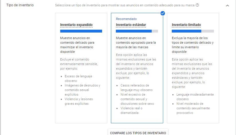 Choose "expanded" if you want your advertising to be included in content where there is sensitive information. The "standard" for more or less the content used by the different brands, and finally, the "limited" to exclude sensitive content.