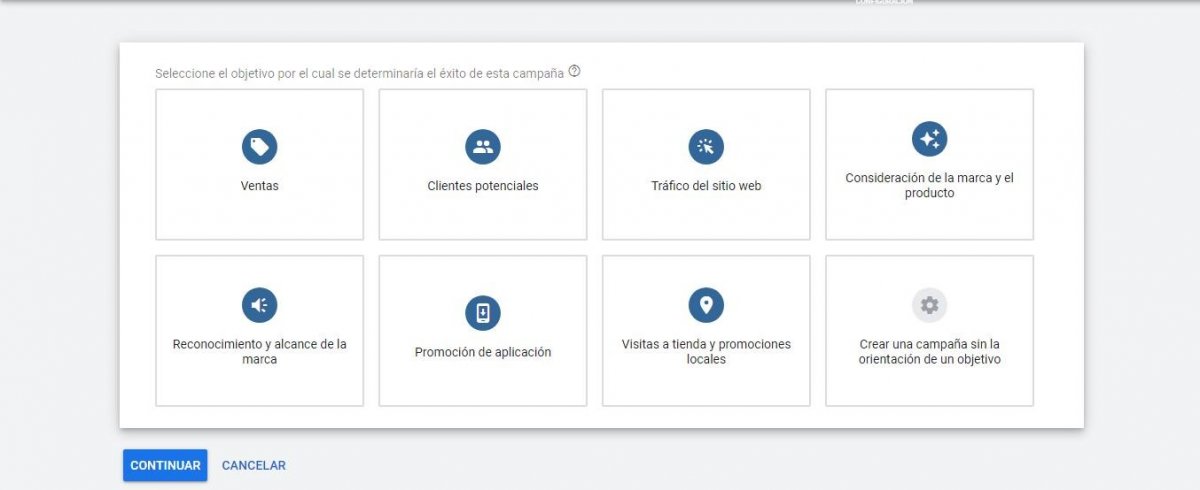 There a side menu opens in which it is necessary to select the option "New Campaign" and the following information will appear in which it is necessary to choose the objective you are pursuing.