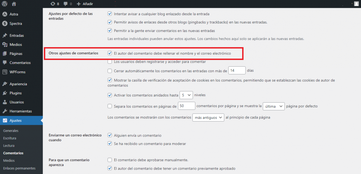 For this, it is only necessary to go to the "Settings" option of the Wordpress administration panel and then select "Comments". From this section you can define the actions that users can carry out on your website.
