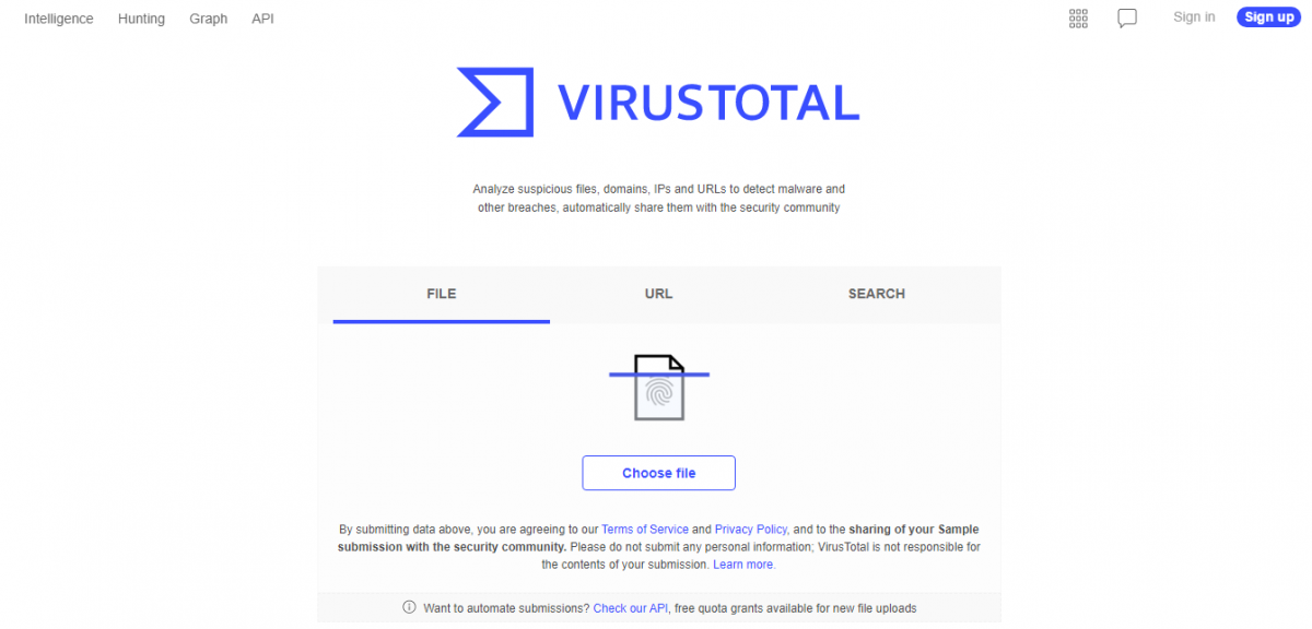It is one of the most widespread services on the entire network and is kept up to date with respect to the threats that circulate. It allows scanning files and domains, as well as IP addresses.