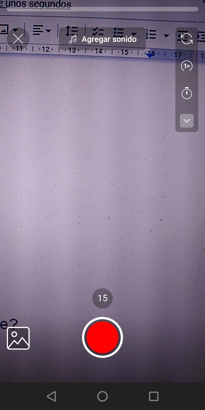 If you touch on the number 15 you can change the duration of the video to 60 seconds. In the Add sound button you will be able to incorporate the music you want, in which it is presented as 1x you will choose the playback speed of the melody and in the little clock you will have the timer.